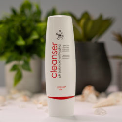 LifeCell’s pH Balanced Anti-Aging Cleanser is our uniquely formulated solution to safely cleanse your skin of makeup and impurities without stripping it of its natural oils. Not only does it maintain the skin’s natural pH balance, it provides anti-aging benefits while remaining gentle enough to use both in the morning and evening. LifeCell’s Cleanser is infused with only the best natural ingredients known to help clean and clear up the skin. Green Tea and Cucumber to help with the inflammatory aspect of Rosacea. The cooling and moisturizing properties in cucumbers contain vitamins A, C, and E, which helps soothe irritated skin and swelling. The alcohol-free astringents; Chamomile, Tea Tree Oil, and Rosemary, eliminate and prevent blemishes by removing grease and tightening pores to keep impurities from entering the skin. And Resveratrol to fight off skin harming free-radicals. It’s perfect for preparing the skin for the All-in-One Anti-Aging Treatment.